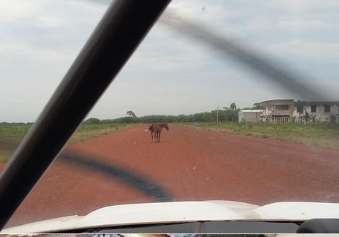 滑走路は立派なアスファルトなのに、タクシーウエイはどろんこの例。しかものら馬がいやがり、こまったケース。詳細はこちら→西部劇