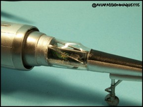 正確には、エンジンコーンの中にいるのです。上の写真をアップすれば、丸いのぞき穴が水平に2個、その上にも右舷、左舷の天井に一個づつ、計6個あいているのがわかると思います。