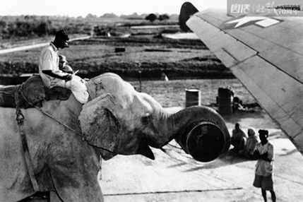 「作業員たちは、1頭の象が12人以上の作業員が担う石油ドラム缶の運搬に相当することを発見した。」