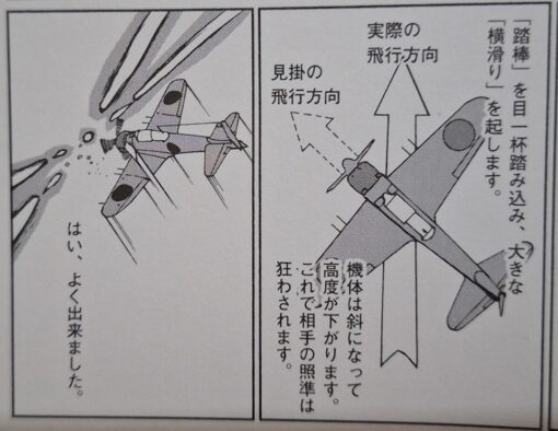 敵機側から見れば、気銃弾は機首の軸線上に飛んでいきます。つまり撃たれる側がいくら横滑りしても、敵機と同じ軸線上を横滑りしていくだけなので、かえって被弾面積が大きくなるだけじゃね、と危惧するのです。