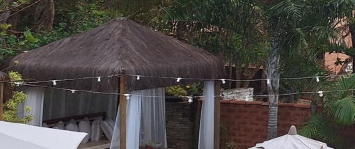 ビーチパラソルの上にある日よけは、得体のしれないビニールシートだった。アスベストなどの汚染物質がでまくりなのだろう。