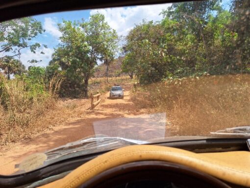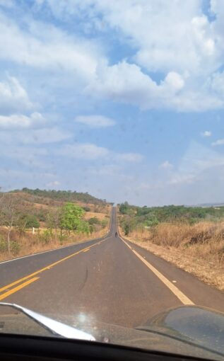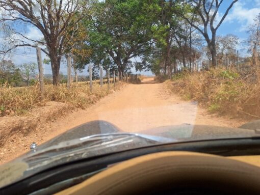 レプリカポルシェ356Aに着替えだのなんだの積み込み。ブラジリアから50キロくらいまでは複数車線のある立派なハイウエー、そこから先は単線の、それでもいいかんじに舗装された道路が続き。