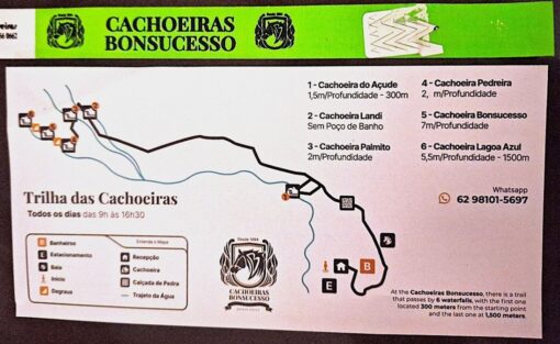 入り口で一人当たりR$60(1700円くらい)の入場料を払い。入場券代わりの腕バンド(写真上の緑のやつ)と、トレッキングルートの全体がわかる案内図をもらいました。