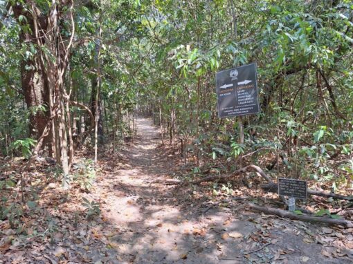 コースは上の写真の右下(Eが駐車場、家のマークが管理小屋)から始まり。往復で3㎞ていどとのこと。当日は9時ころ到着し、12時頃には管理小屋まで戻れました。