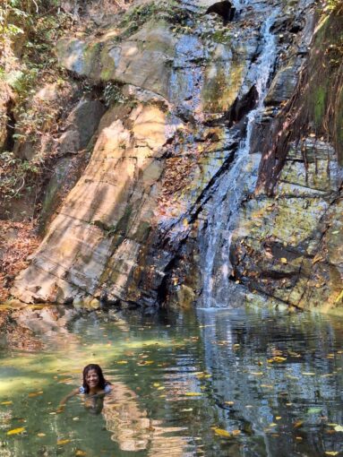 こちらは人が腰までつかるくらいの滝つぼがありました